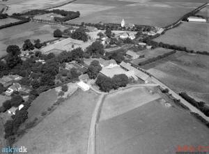 Luftfoto fra 1955 af Landsbyen Bramdrup. Fotograf Sylvest Jensen, original i Det Kgl. Bibliotek; foto benyttet i bogen Før og Nu i Bramdrupdam, bind 2