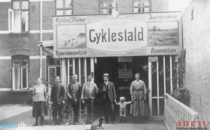 | nuværende | 23. apr 2025, 03:27 | 1.325 × 816 (841 KB) | Billy (diskussion | bidrag) | B32494 Stæchmann Cykelstald i Søndergade, ca. 1920-22. Fotograf Niels Lisberg. Fra venstre Tine (hed sandsynlighed Katrine Dinesen), Cykelhandler Andresen, fætteren Jørgen Nielsen, Peter Ahn Eriksen, Carl A. Stæchmann, sønnen Kjeld Stæchmann, og... |
