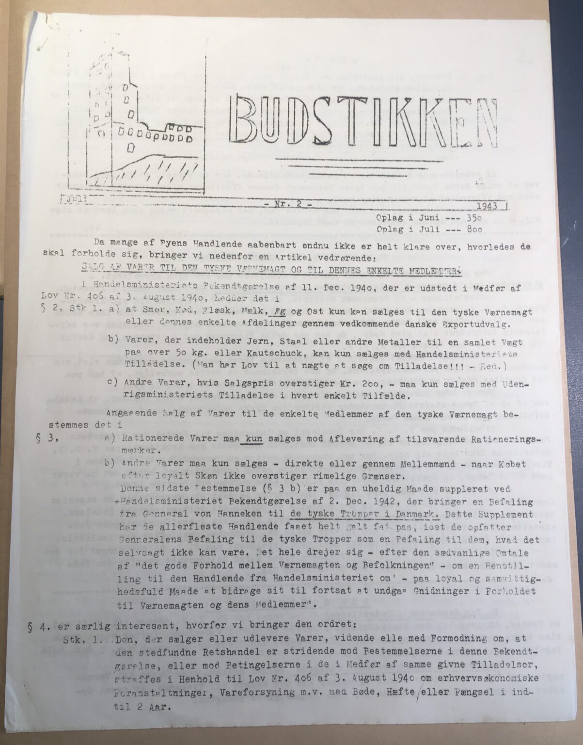 Det illegale blad Budstikken - nr 2 juli 1943. Foto krigendagfordag.dk / Billy Sørensen 2018