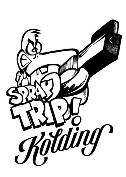 SprayTrip bogcover. Bog om graffitikulturen i Kolding fra 1984 til 2014, af Rune Lorentsen og Lars Skouboe (2014), udgivet af Kolding Stadsarkiv.