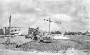 Boligområdet Munkebo ved Palmeallé under opførelse i 1970erne